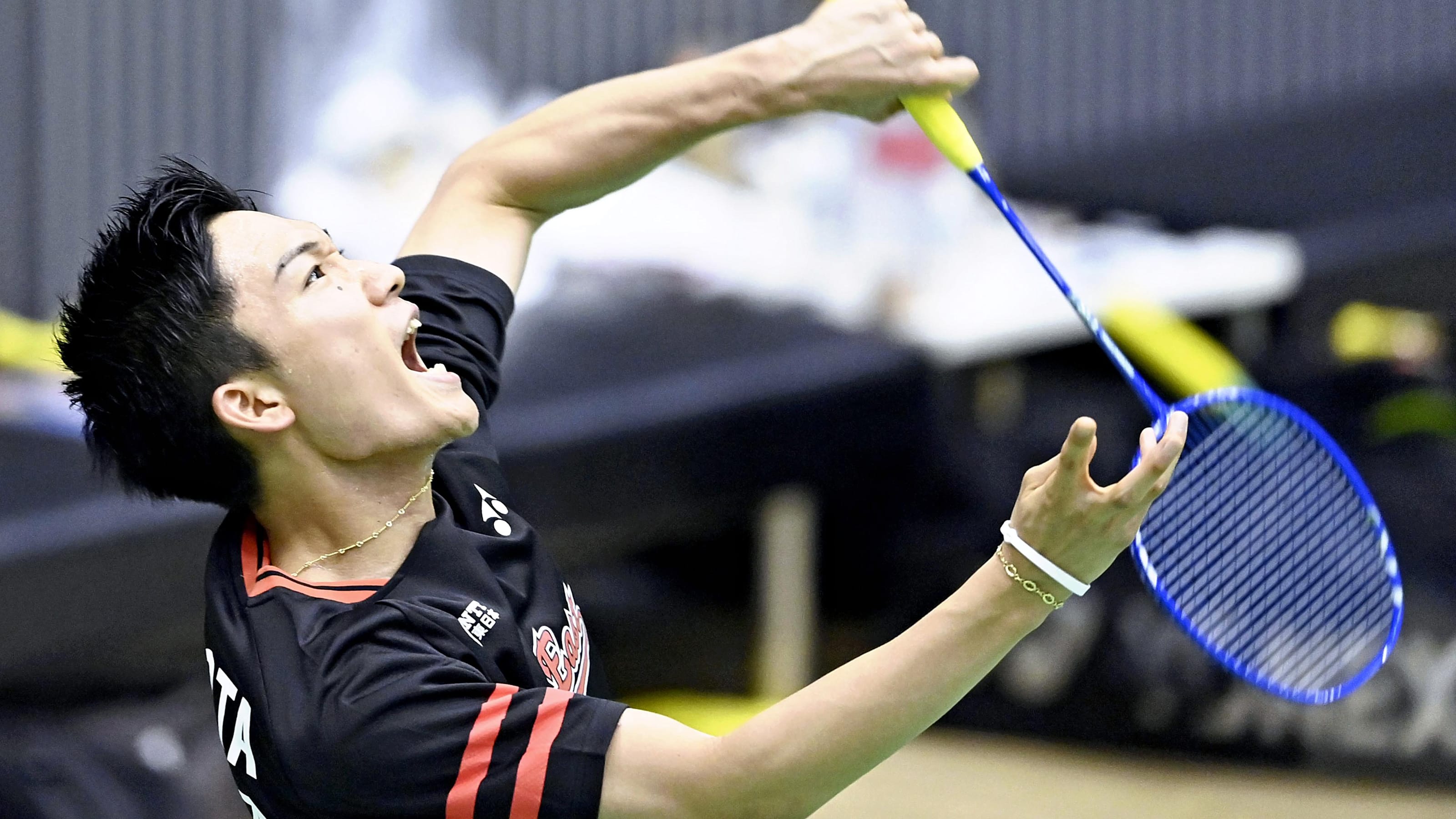 Kento Momota : Kento Momota of Japan reacts after a point against South ... : Badminton world no.1 momota kento is talking gold at home olympics again after recovery from fatal accident and surgery.